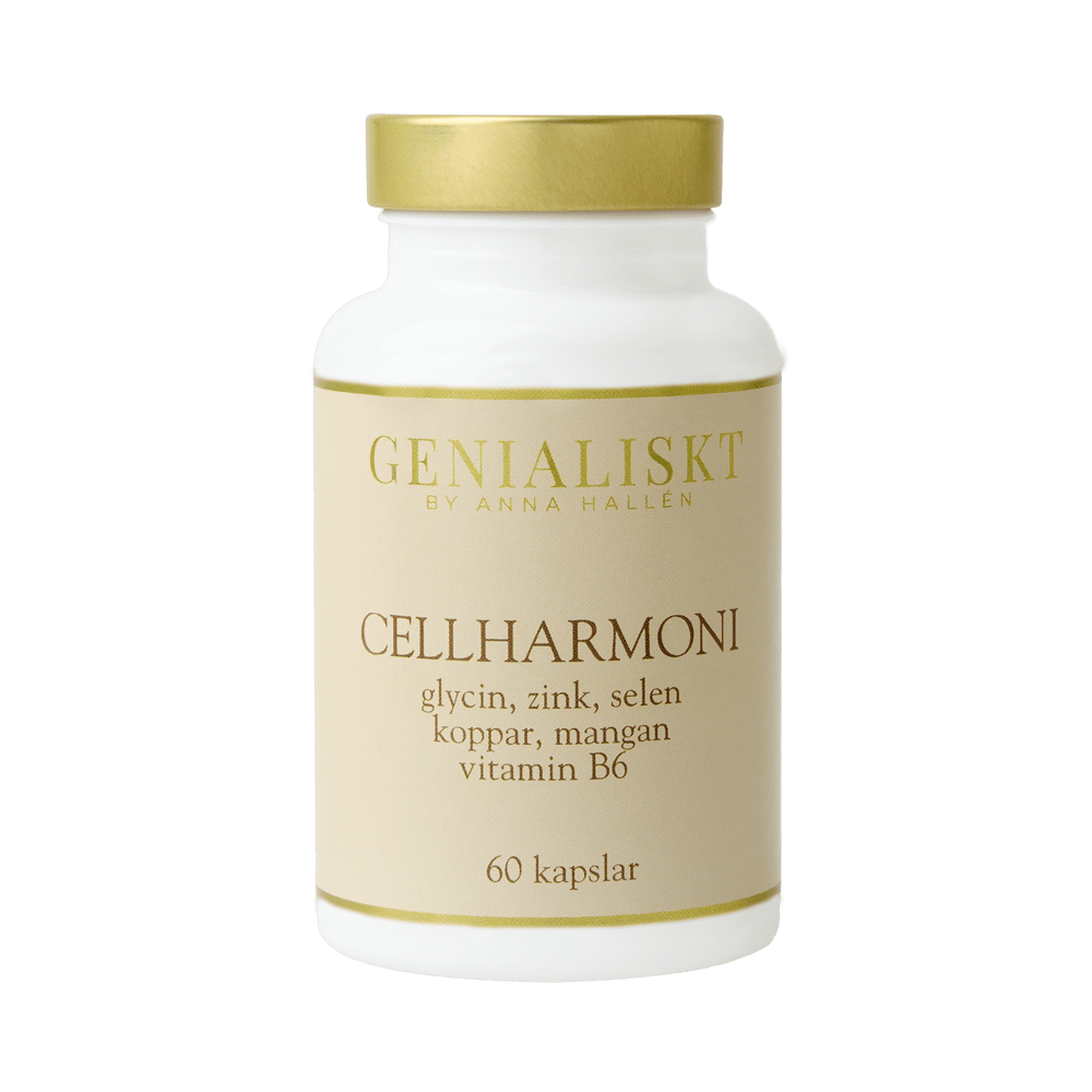 Cellharmoni är ett kosttillskott med zink, koppar, mangan, selen, vitamin B6 & glycin. Zink, selen & mangan bidrar till att skydda cellerna mot oxidativ stress. Vitamin B6 bidrar till normal energiomsättning & nervsystemets normala funktion.