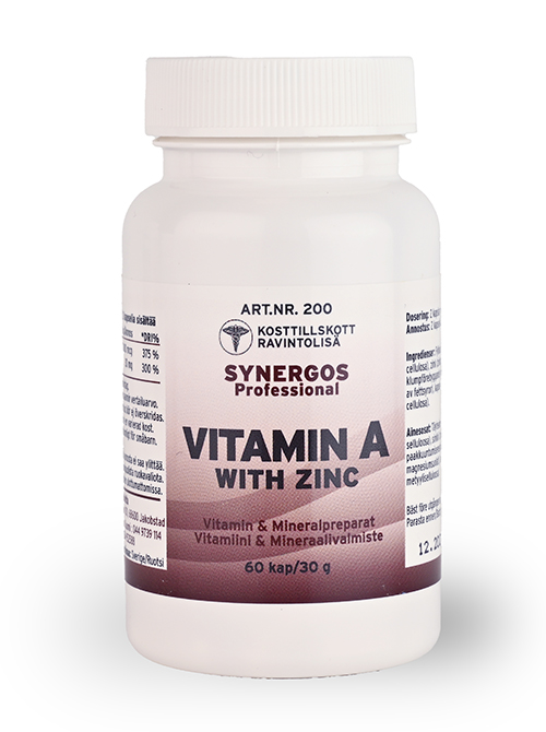 Fyllnadsmedel (mikrokristallin cellulosa), zink (zinksulfat), vitamin A, klumpförebyggande medel (magnesiumsalter av fettsyror), kapsel (hydroxipropylmetylcellulosa).