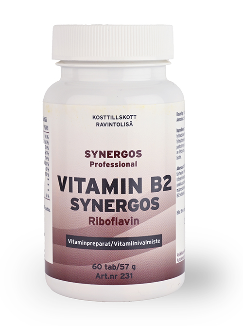 B2 Riboflavin Synergos är ett avancerat kosttillskott som bygger på bredspektrum- och synergiprincipen. Varje tablett ger 200 mg riboflavin tillsammans med riboflavinsynergister.