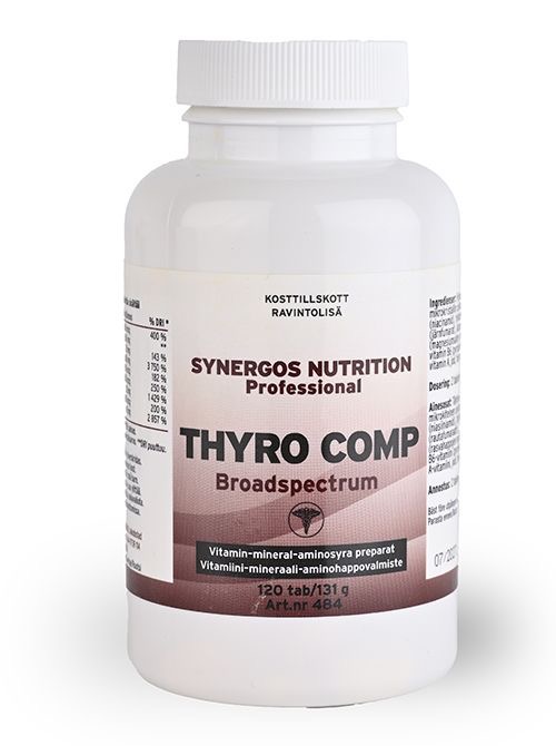 Thyro Comp Synergos är ett terapeutiskt kosttillskott vid konstaterad brist, som bygger på bredspektrum- och synergiprincipen